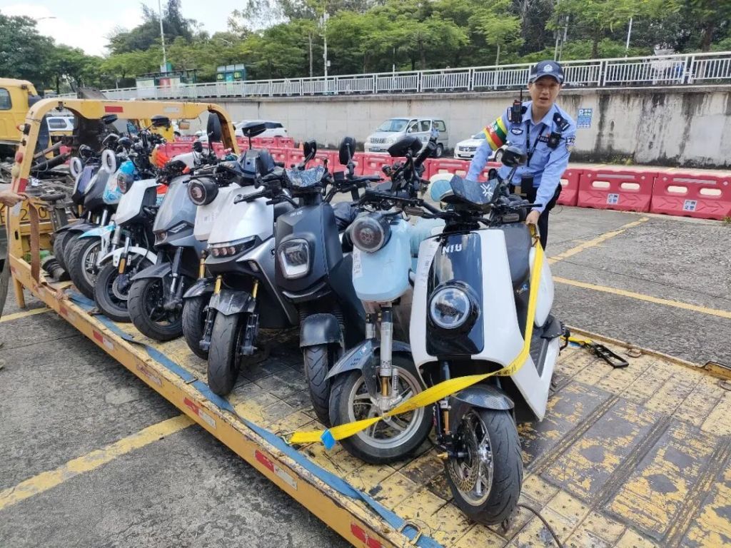 广州交警依法查扣违规车辆。